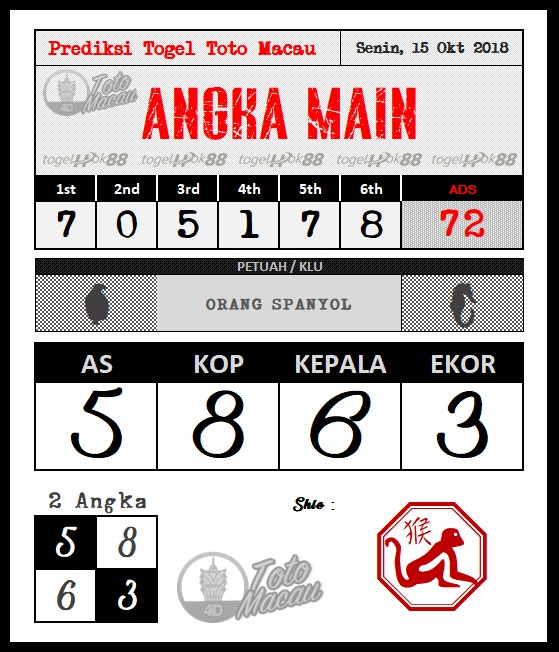 PREDIKSI TOTO MACAU POOLS 15 OKTOBER 2018 Prediksi Togel Hari Ini